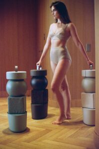 “Les accessoires de sport qui sculptent : ce totem design concentre six accessoires incontournables pour le pilates, le yoga ou le renforcement musculaire. Il ne se range pas, il s’expose.”