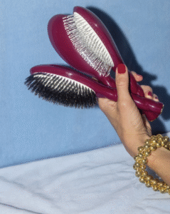 “Une brosse qui démêle sans tirer, stimule le cuir chevelu et transforme le brossage en un geste apaisant et régénérant.”