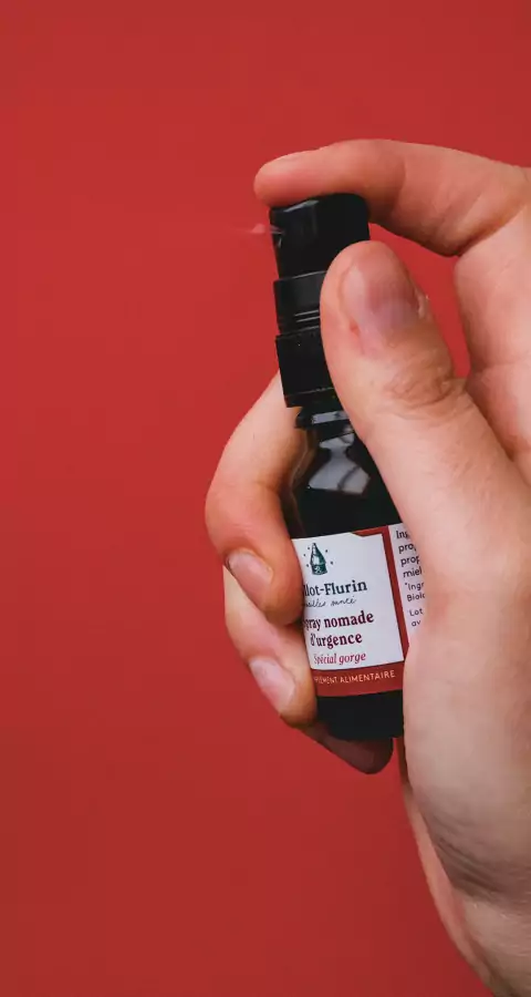 "Le compagnon idéal aux premiers froids et aux changements de saison. Quelques pulvérisations suffisent quand la gorge pique ou tiraille: la propolis noire apaise et le miel adoucit"