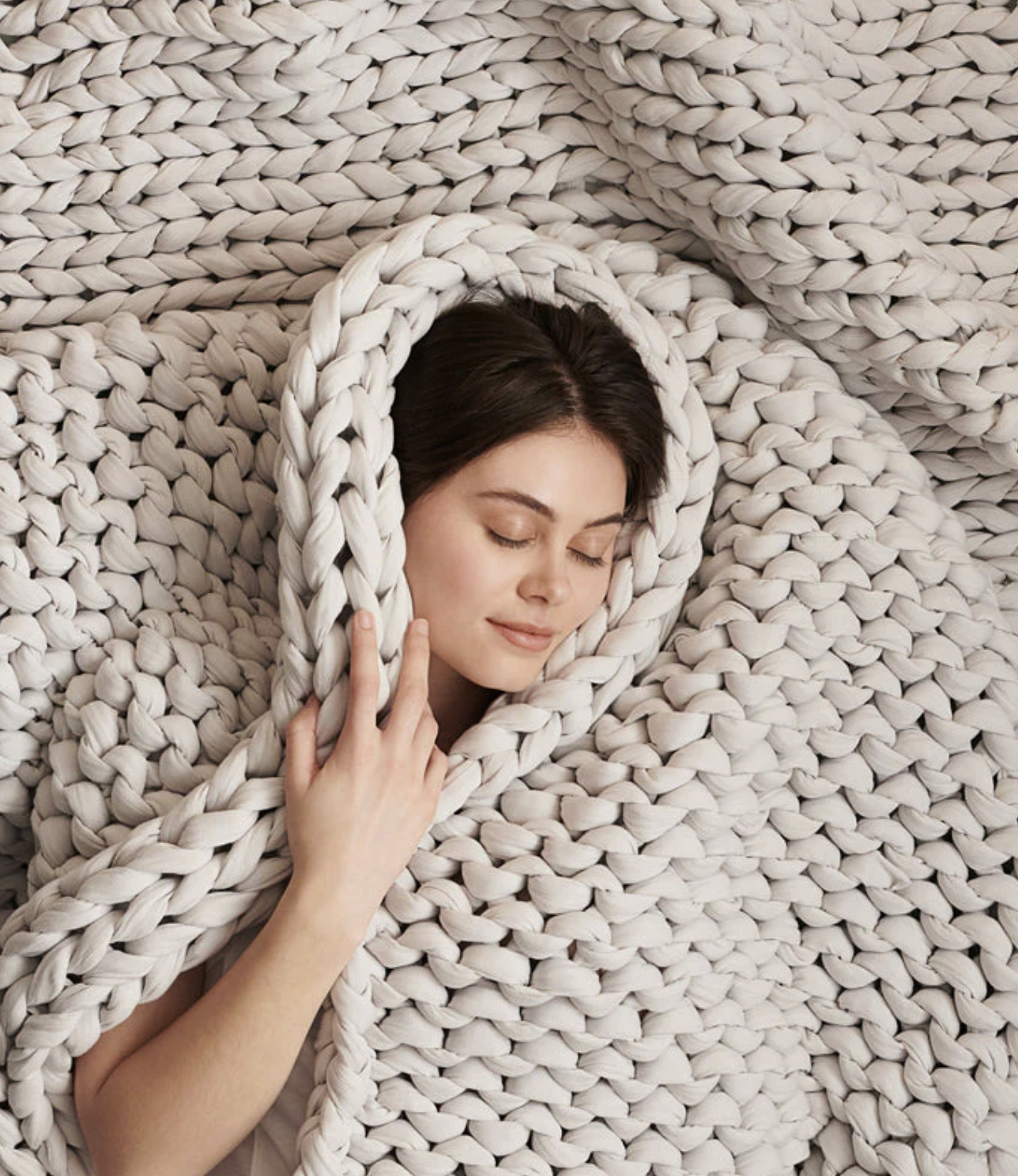 "Une couverture lestée d’une maille respirante et douce qui enveloppe, apaise et vous aide à vous ancrer dans l’instant, une étreinte bienveillante pour des nuits plus sereines."