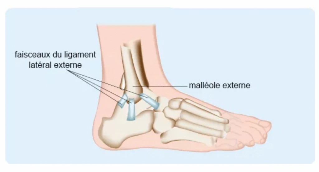 Ce n’est pas “juste une cheville tordue” : c’est une lésion des ligaments qui stabilisent l’articulation entre le tibia, le péroné et l’astragale.